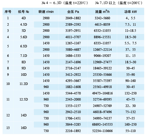 1.本風機制成單吸入。機號有№4、№4.5、№5、№6.3、№7.1、№8、№9、№10、№11.2、№14、№16 十三個機號。